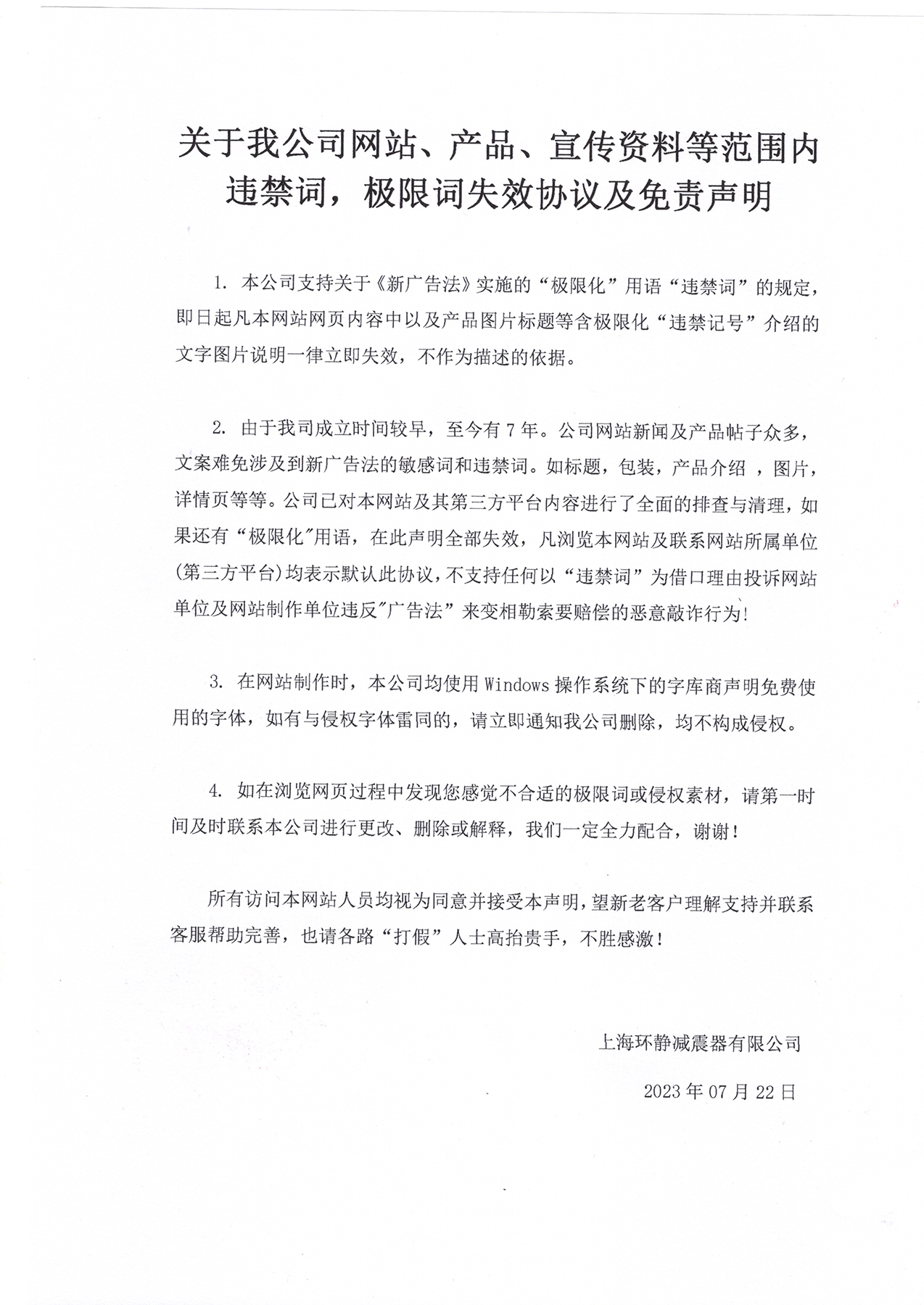 關(guān)于我公司網(wǎng)站、產(chǎn)品、宣傳資料等范圍內(nèi)違禁詞,極限詞失效協(xié)議及免責(zé)聲明